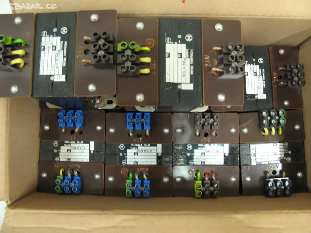České klasické nové motané transformátory vyrobeny Mechanikou Praha modely BJV 0.05E 6ks, plně funkční což mohu předvést na místě předání.Oba modely mají přibližné nejvyšší rozměry:11 x 8 x 11 (v x š x h).Cena při odběru všech naráz 50VA 200,-/ks nebo po kuse 350,-/ks