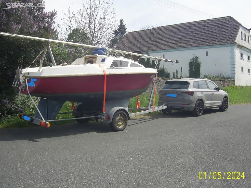 Dvoukýlová kajutová plachetnice Leisure 17 SL / KK , Yamaha 4PS / 4t , vlek Harbeck 1,1t Prodáme tuto laminátovou plachetnici , 5,18 x 2,13 x ponor 0,65 m , plachty 13,7 m2 , v dobrém originálním stavu , rok výroby 1983 . Ježděná jen na sladké vodě , koupili jsme ji synovi , provedli údržbu , dovybavili , a on ztratil zájem . Jsme už starší / 70+ / , a proto prodáváme . Lodička má přední rolfok 6 m2 / Furlex / a persenik , hlavní plachtu 7,7 m2 rolovanou do ráhna a persenik plus náhradní plachtu , frklík , kompas , echolot , clinometer , poziční a kotevní LED světla , osvětlení kajuty , radio s USB , Bluetooth a MP3 , sklopný držák motoru , baterii 12V / 80 Ah , 6 fendrů , skládací kotvu s řetězem a lanem , gurty na transport , malou letní plachtu na ráhno , velkou krycí plachtu na zimu a persenik na motor . Navíc nová přídavná nádrž k motoru 12 litrů . 2x náhradní propeler , 3 záchranné vesty do 120 kg , záchranný kruh , 2 pádla , bidlo , lékárnička , pár náhradních dílů , nějaká lana a barvy , polstry jsou uskladněny v domě . Loď a vlek jsou psané na syna , mají německé doklady , vlek TP do 07 / 2026 , po sepsání české kupní smlouvy není problém loď a vlek přihlásit v CZ . Cena Kč 89.000,- , lodička stojí u nás na dvoře na vleku , okres Plzeň jih . S tímto typem lodičky dojel borec z Anglie až do Karibiku / na Kubu / , potřeboval asi 30 dní - Wiki