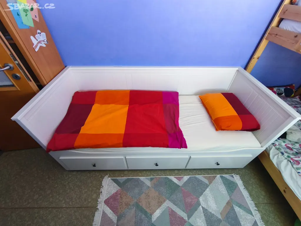 Dobrý den, prodám rozkládací postel Ikea Hemnes s jednou matraci FJÄLL Pěnová matrace, tvrdá/bílá, 80x200 cm. Oboje kupováno nové 24.2.2026 v Ikea. stav nového zboží.