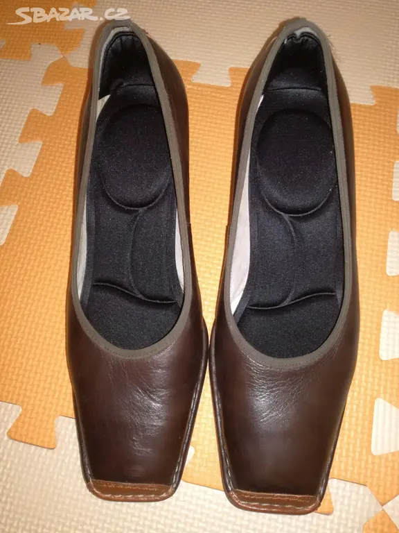 Prodam krasne lodicky, kozene,barva tmave hneda,spicky a paty svetlejsi hneda. Velikost 38, znacka Ara flex, delka vnitrni stelky 25 cm, podpatek 5,5cm,jsou vzate asi 2x, nova vymekcena stelka, v cele bote i pate, cena je bez posty, sire H, normalni noha