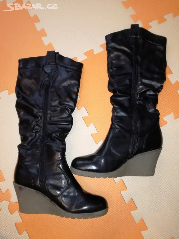 Prodam krasne kozacky. Obvod v nejsirsi casti 40cm.jsou nosene,ale v poradku, stelka vnitrni 25cm.vevnitr lehce zateplene.prijemne a pohodlne na noze, ja jiz nevyuziji.